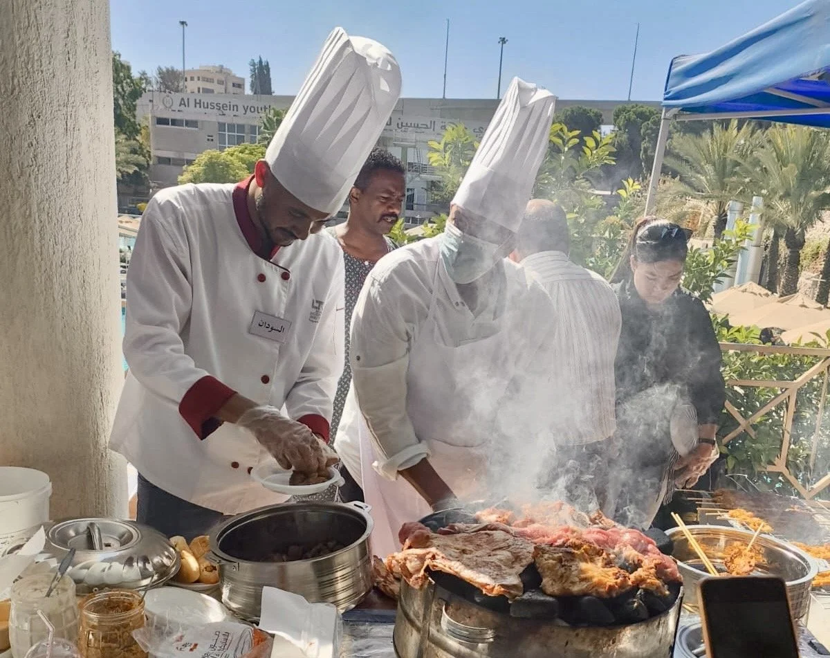 To wander through the Diplomatic Bazaar in Amman’s Al-Hussein Youth City (also known as the Sports City) is to travel across continents in an afternoon. Among the 40 nations presenting, there were particular standouts: The Japanese pavilion presented crisp tempura dusted with matcha salt, while the Mexican booth filled the air with the spice of tacos and fresh salsa. Nearby, the Russian stand overflowed with sweets and hand-painted nesting dolls, and the Greek table offered cool yogurt topped with honey and walnuts.